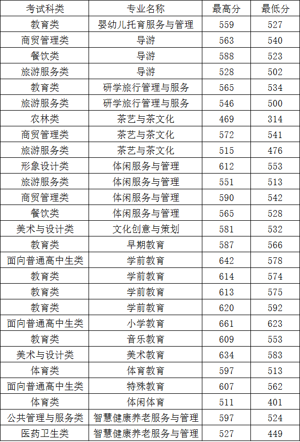 參加24年福建高職分類考試的考生同學們,如果你們想報考泉州幼兒師范高等專科學校,可以參考以下23年其院校高職分類招考的專業及其錄取分數線,再結合自己的興趣愛好和自身能力做出最適合自己的選擇。